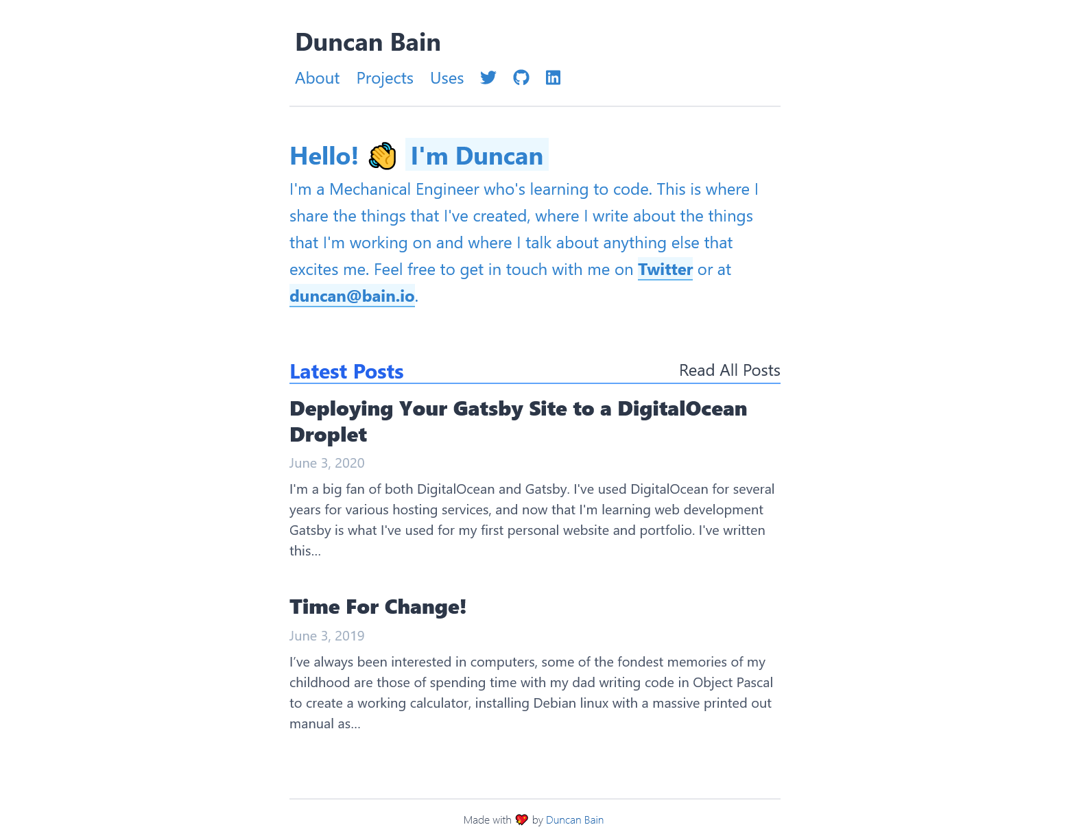 A personal website created using Gatsby, Tailwind CSS and Styled-Components. Hosted on Netlify.